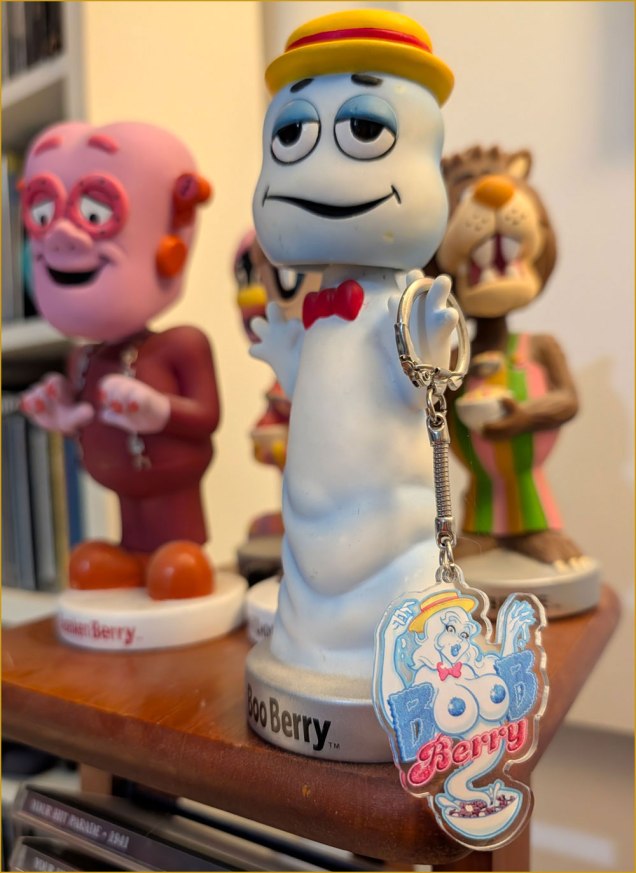 I ordered his lovely Boob Berry keychain (shown below) — and Dracurella and Frankenbabe stickers and buttons, and my fate was sealed. Writing to thank him, I found Joe to be a gracious and erudite fellow, and so I kept an eye on his work from that point on.