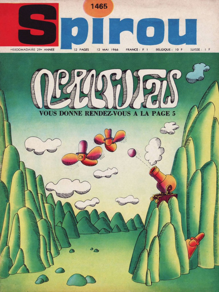 I’m afraid we’re back into surrealism territory, folks. Our focus today is on a single piece by polymath Maurice Rosy (1927-2013, Fontaine-l’Évêque, Belgium), published in bédé weekly Spirou in 1966, in the midst of Rosy’s tenure as the magazine’s co-art director (with Yvan Delporte) and boundless idea generator (1956-73, for the record… the period widely hailed as Spirou’s golden age).