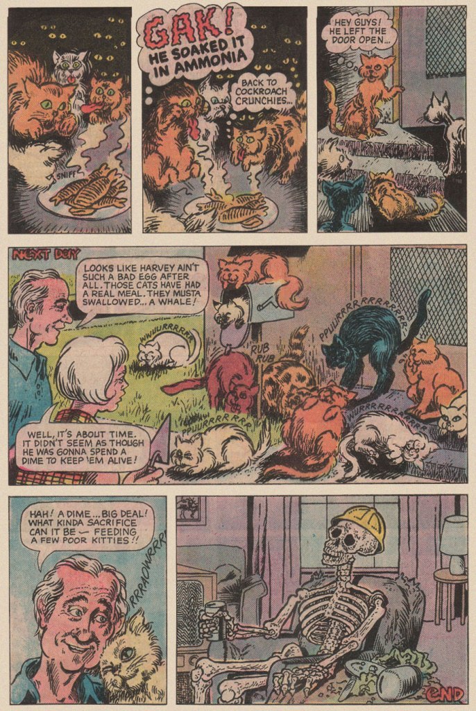 The formula was similar to Simpsons Comics spin-off Treehouse of Horror: plenty of famous (and talented!) cartoonists having fun with the characters. Between the roster for the regular comics and the special-themed supersized issues, quite a few artists who participated are WOT favourites, and some are Tentacle Tuesday masters, to boot: Hilary Barta, Tony Millionaire, Al Jaffee, Ramona Fradon, Michael T. Gilbert… in 2017, Stephen R. Bissette even broke up out of retirement to work on a special Hallowe’en issue. I think this post is a decent sampler of the different styles and storytelling techniques involved – I’ve concentrated on prominent tentacles, and ignored all the trimmings (the recurring jellyfish tentacles, pumpkins sprouting grabby vines, etc.)