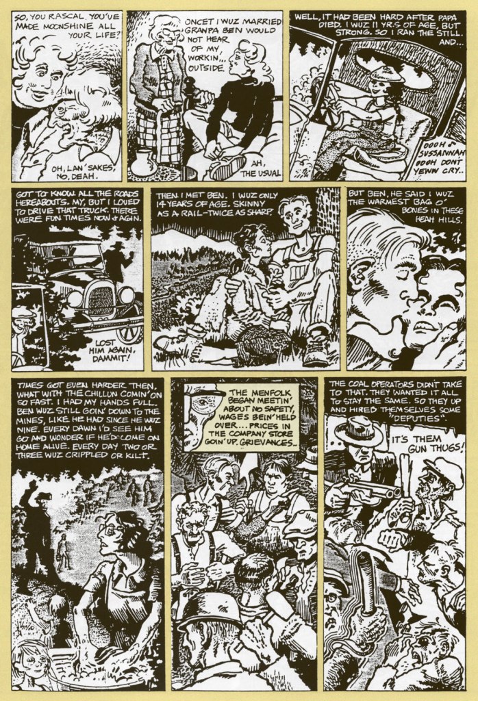 Originally published in Wimmen’s Comix no. 7 (Dec. 1976, Last Gasp). This is underground storytelling at its finest: uncompromising, political, passionate, personal, at once witty, moving and instructive. And that whole gamut gets run through in a mere four beautifully-drawn, expertly-paced pages.