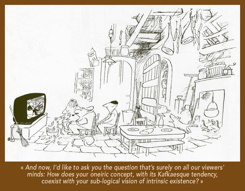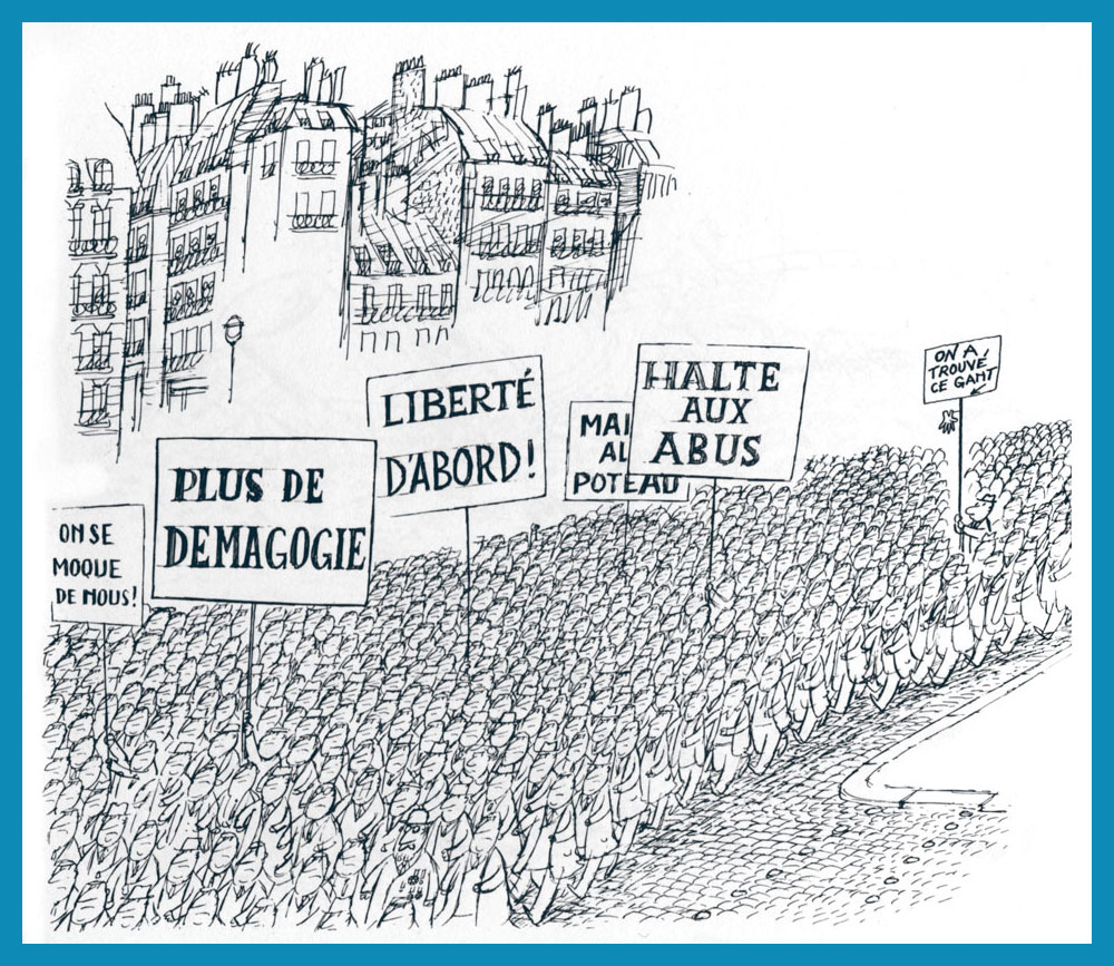 « But Sempé’s humour has earned the favour of a very wide audience. Without a doubt because he’s able to observe with a playful — but rarely sadistic — eye the drawbacks and peculiarities of our daily lives, and that his reader feels — mistakenly — reassured by this vision.