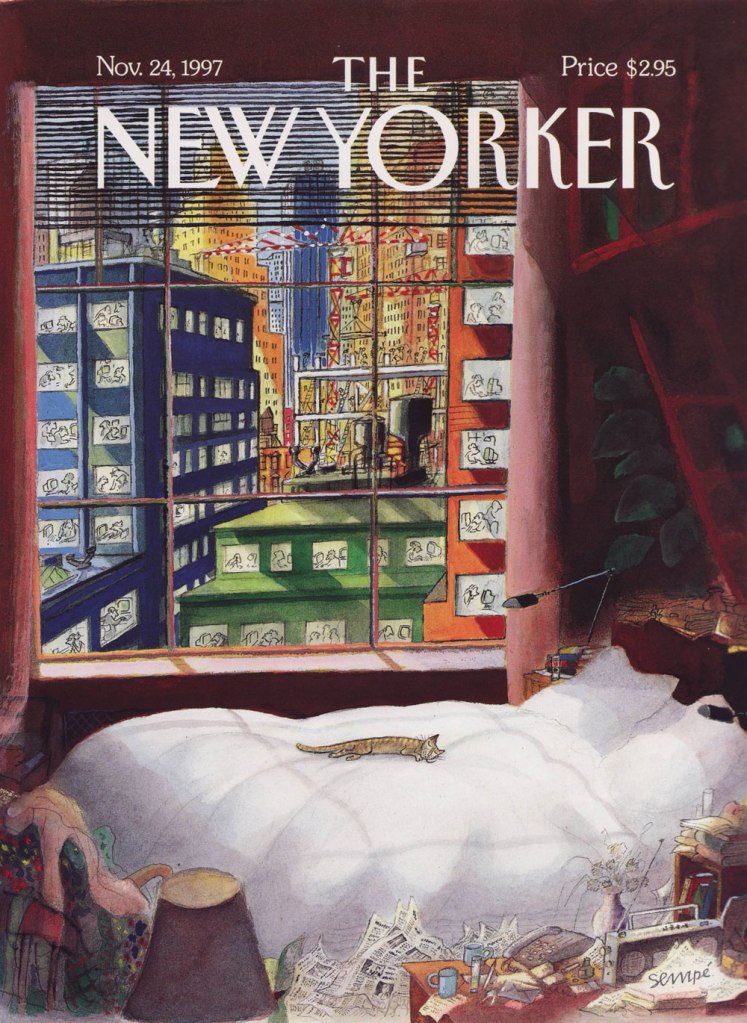 Naturally, I don’t dislike *all* of his New Yorker covers. This one, from the November 24, 1997 issue, is a peach.