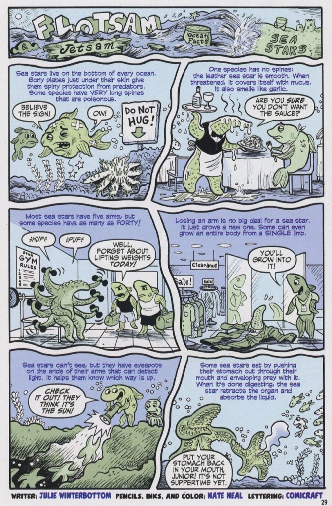 Flotsam & Jetsam – Ocean Facts: Sea Stars, written by Julie Winterbottom and illustrated by Nate Neal, published in SpongeBob Comics no. 71 (August 2017).