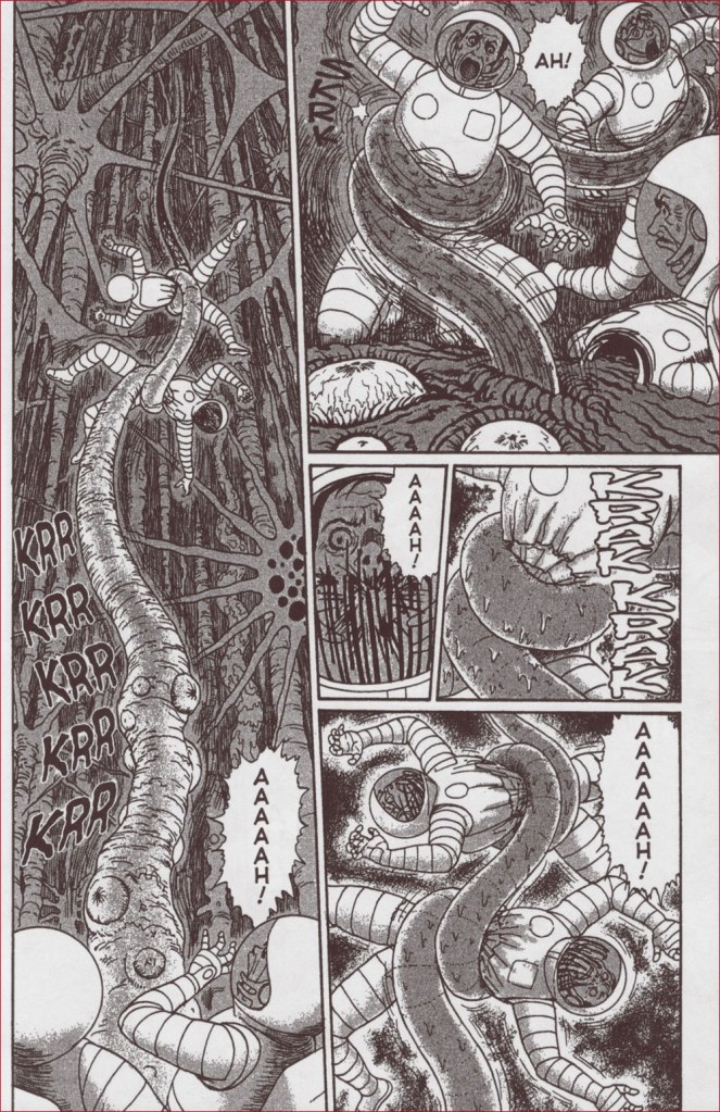 We have only mentioned Junji Ito once before (in Tentacle Tuesday: Octopods Dig Manga!), but I am a fan of his work – or at least of the best of his work. In my assessment, that would be the genuinely disturbing Gyo (with the catchy subtitle of ‘The Death-Strench Creeps‘) and the haunting Uzumaki, as well as a handful of excellent short stories.
