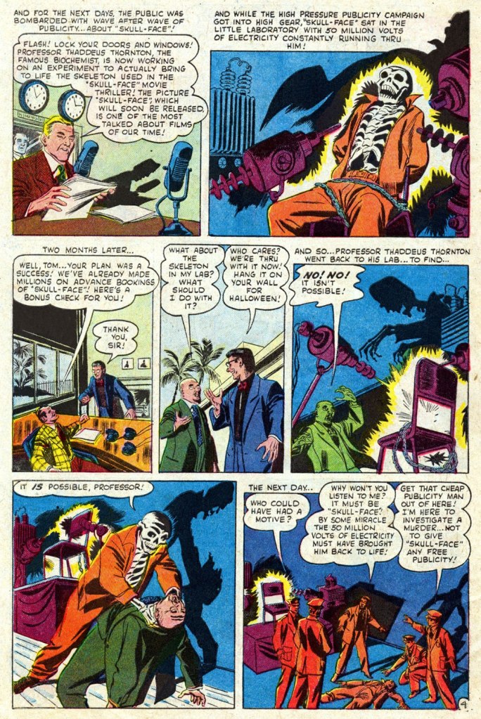 The ho-hum Sol Brodsky cover of Mystery Tales no. 6 (Dec. 1952, Atlas), but hey, our pal “Skull-Face” is the featured attraction!
