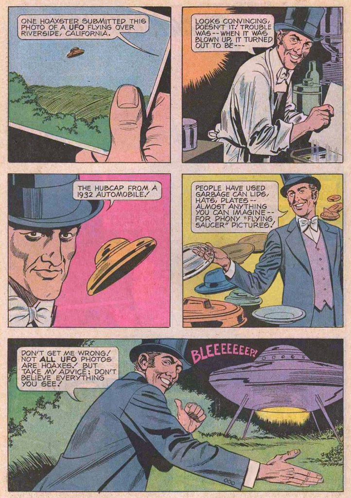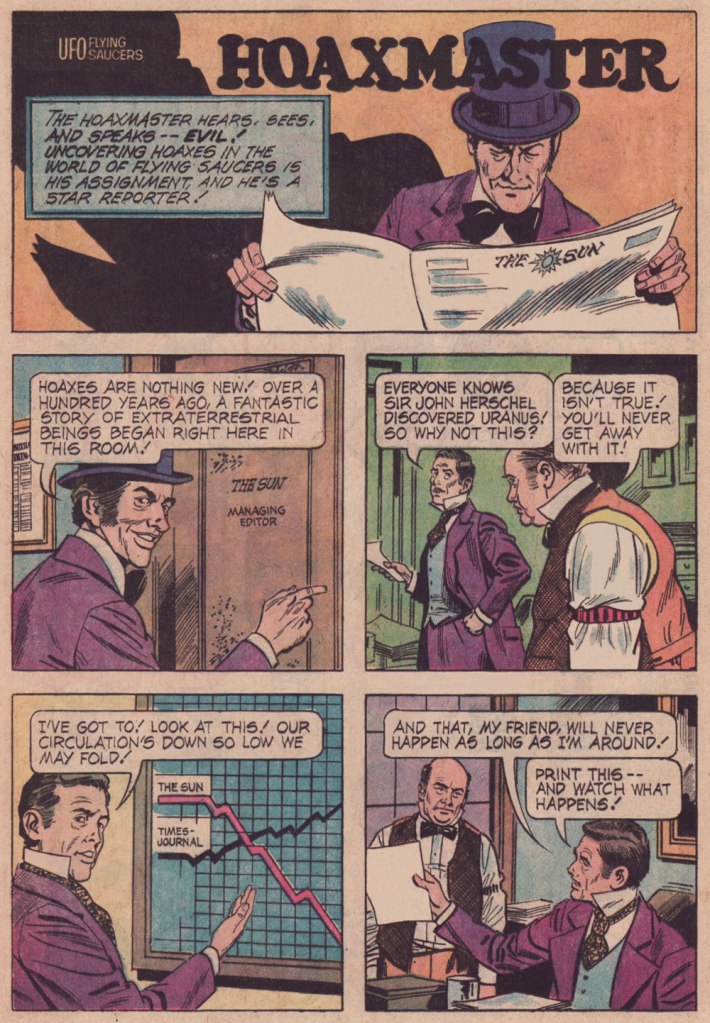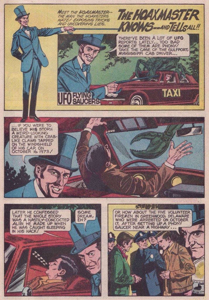 The introduction of The Hoaxmaster, from UFO Flying Saucers no. 4 (Nov. 1974, Gold Key).