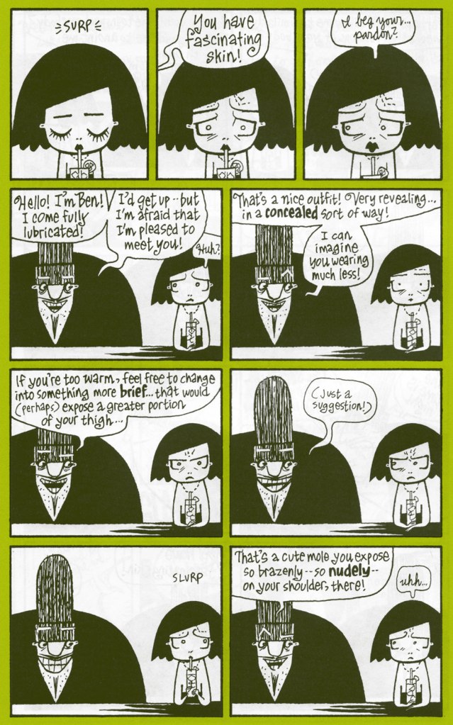 Page from Naked Brain no. 3 (2002). This particular episode reminds me of Shel Silverstein‘s very brief play ‘Bus Stop’, which you can read here, starting from page 12.