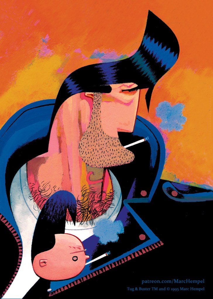 The original art for Tug & Buster no. 1 (1995) borrowed from Hempel’s Tumblr. Leaving the watermark on, as removing it seems distinctly impolite!