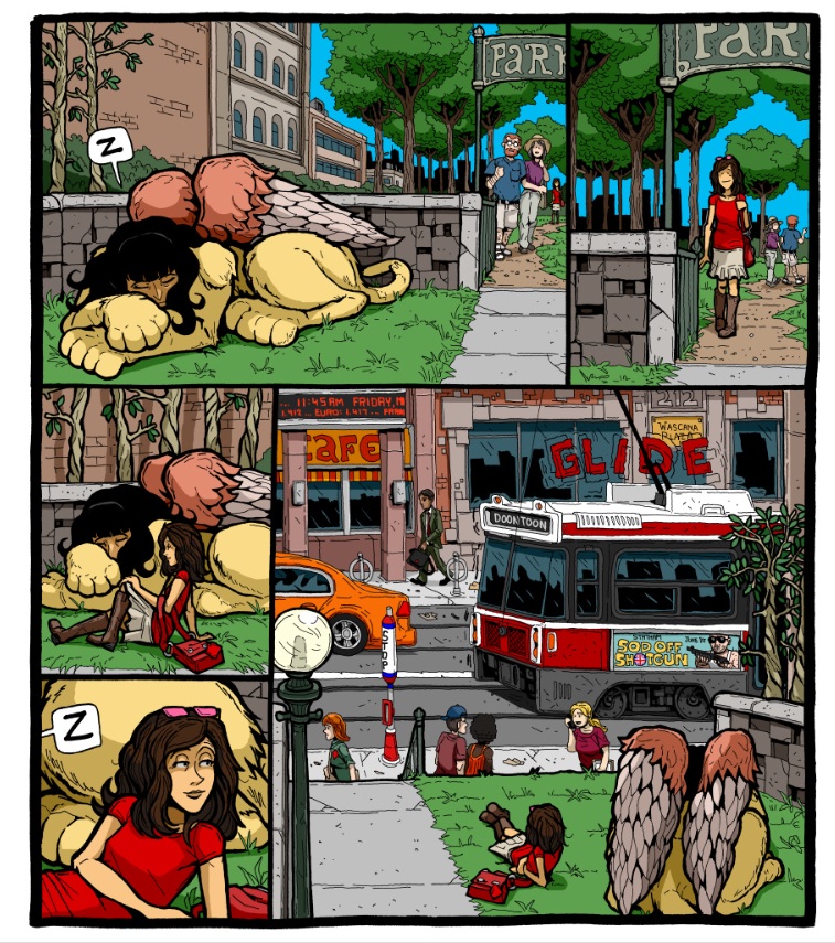 I see no antagonism between Madden’s girly cartoons and his illustrations of boys hanging out with dogs or cats living in castles; his florid style lends itself equally well to voluptuous women or magical ships, and he clearly has a real affinity for drawing animals replete with personality and charm.