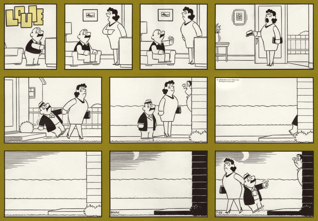 Sunday strip from July 20, 1975, in which Louie gets (meekly) combative.