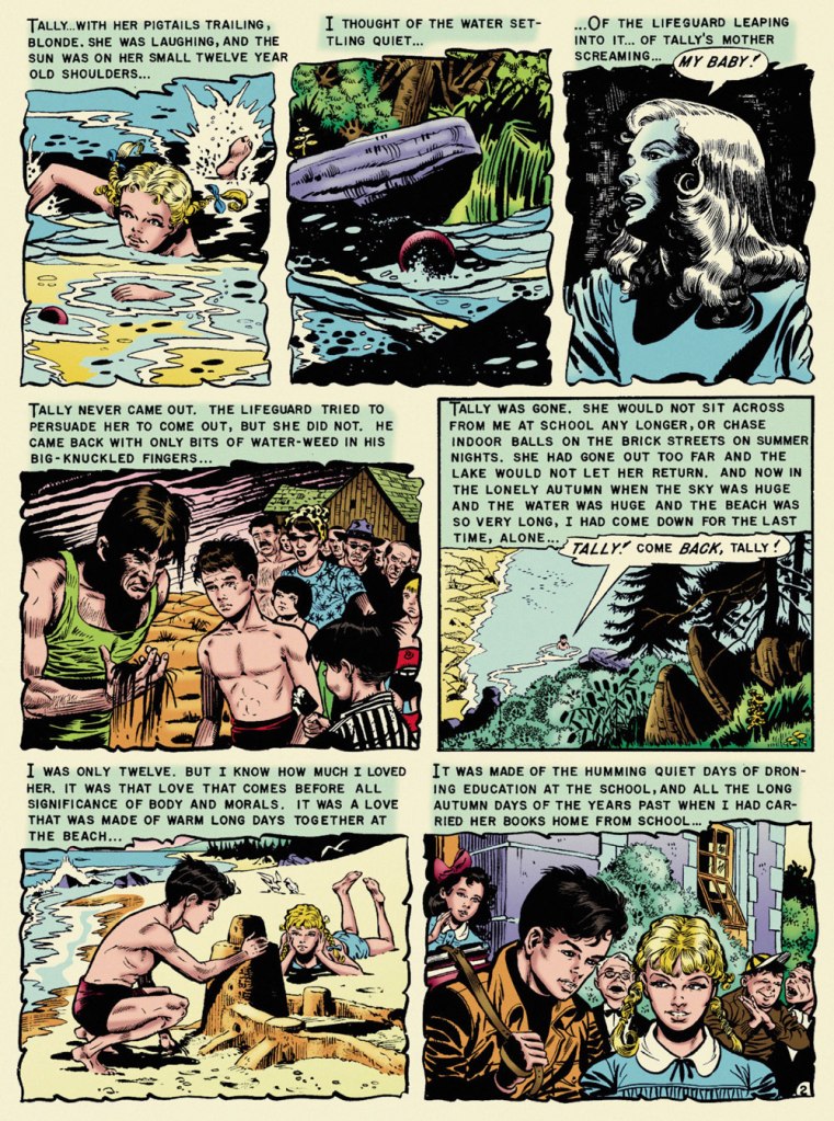 « It is hard for me to imagine how the 1953 comic book reader must have reacted when they picked up Vault of Horror #31 and read “The Lake” (adapted by Feldstein and Joe Orlando). The same month, Batman was fighting a crime predicting robot and Superman was helping to peel potatoes for Lois Lane during her stint in the Women’s Army Corps. So to go from that to this, a hauntingly sophisticated tale of a young boy obsessed with the death of his childhood sweetheart, must have been mind-blowing. »