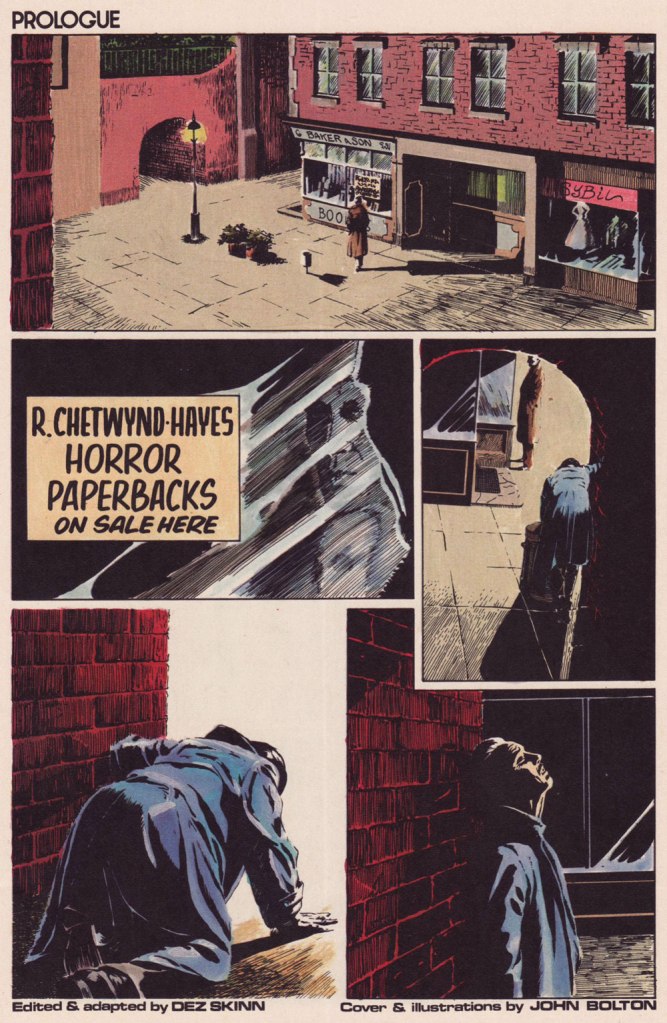 This material was reprinted (waste not, want not!) in Halls of Horror nos. 25 and 26 in 1983, then in North America, in a coloured version, in John Bolton’s Halls of Horror nos. 1 and 2 (both June 1985, Eclipse). And so here we are.