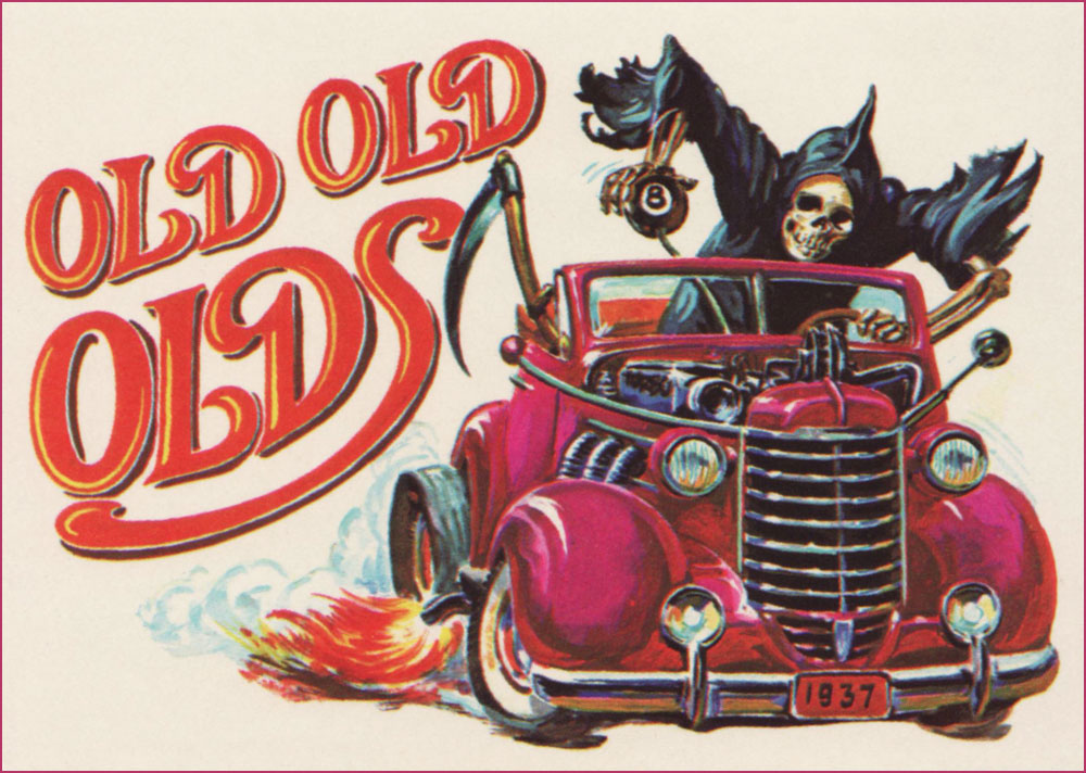 Card no. 1. Note the belfry engine.Card no. 4.Card no. 9.Card no. 17.Card no. 18. Held together, of course, by surgical stitching.Card no. 22.Card no. 23. This one, without question, was painted by Gary Hallgren… note the licence plate.Card no. 26.Card no. 27.Card no. 45. Here’s the ideal soundtrack for this scene.Card no. 54. I love that this heap isn’t going anywhere: it’s on bricks.