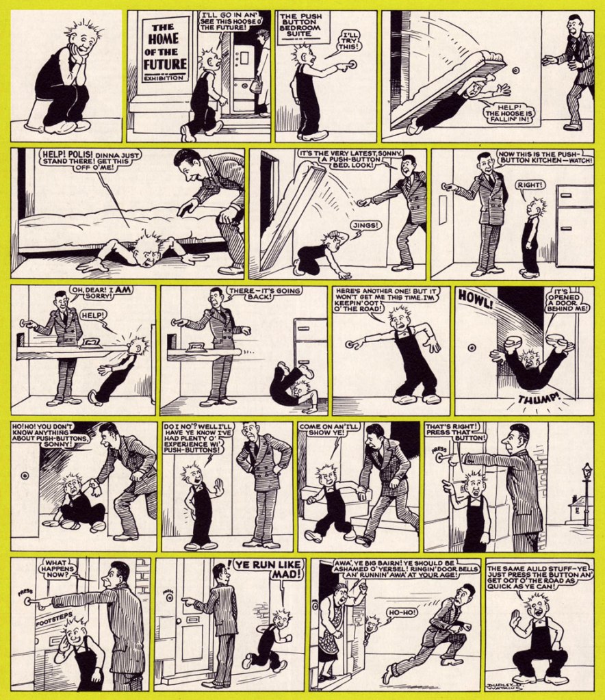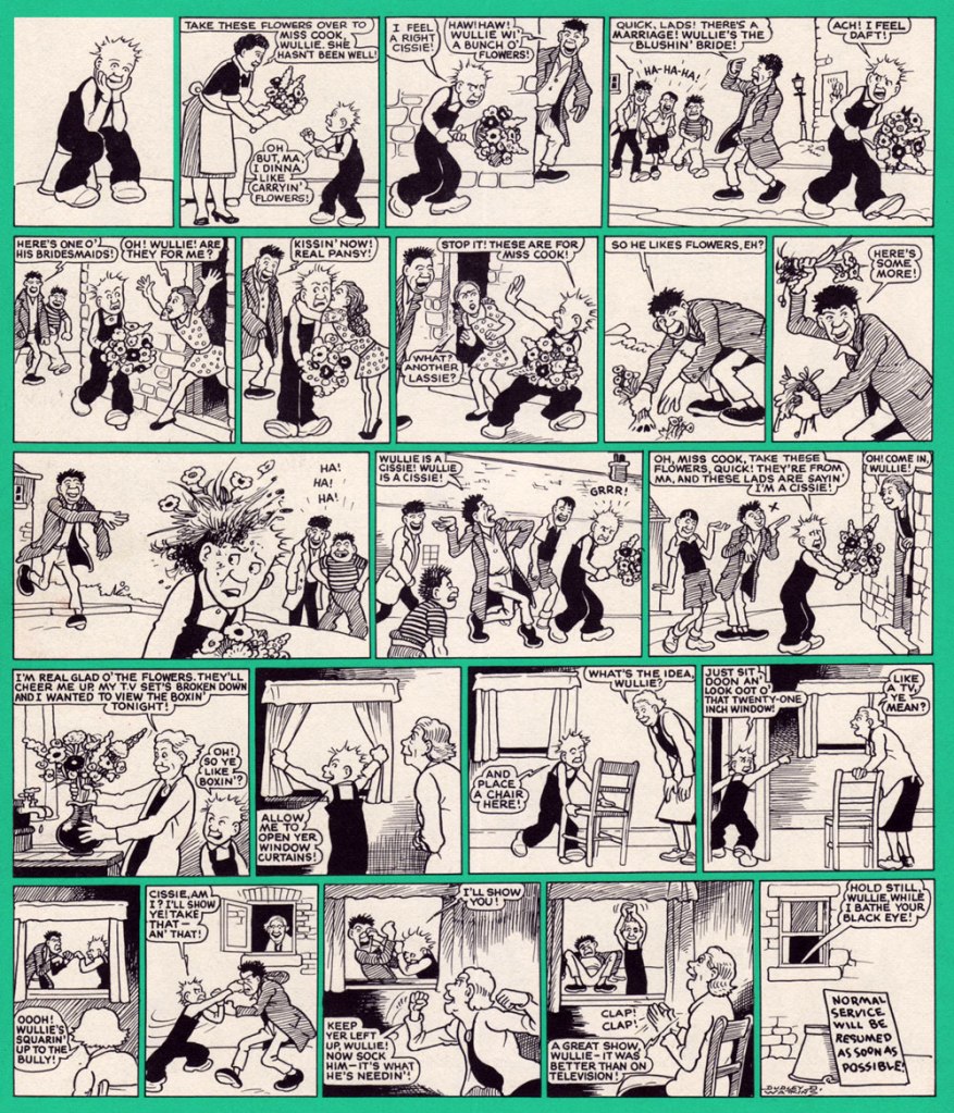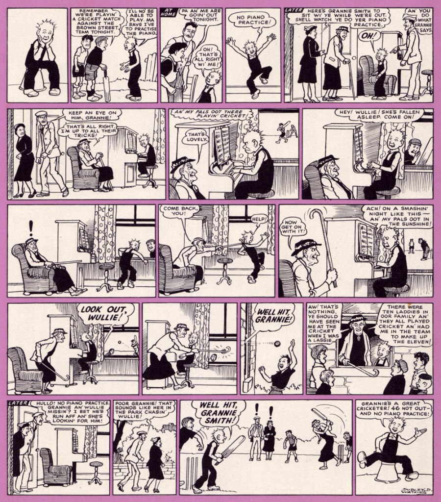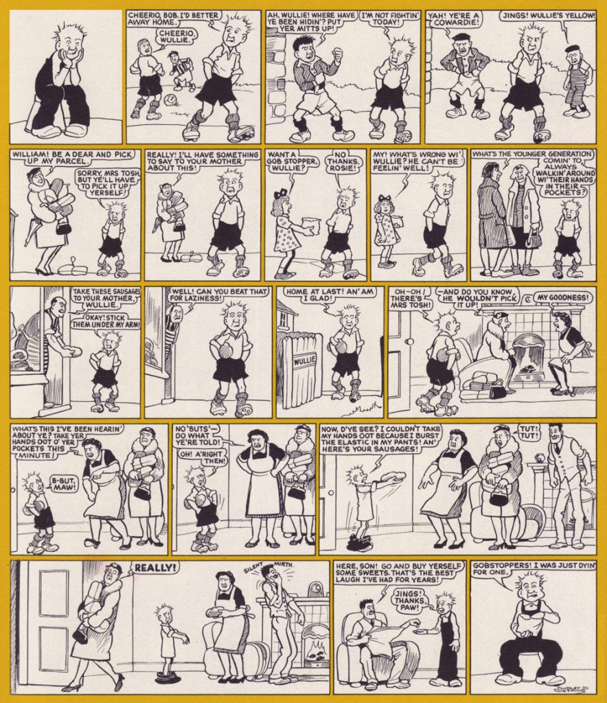 The Low & Watkins duo also came up with The Broons, which started the same year and ran in The Sunday Post as well, to the point where the strips were often collectively referred to as Broons & Oor Wullie. There’s a lovely documentary about The Broons here.