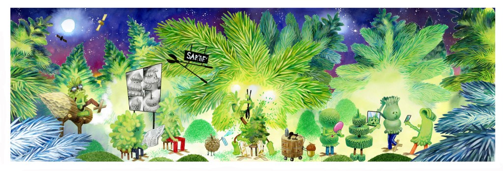 Another thing I really love is imaginary food (which is why the duo of comic artists James Stokoe and Brandon Graham is going to be a post topic sometime in the future), and Chavouet did a beautiful job with his Gloutisphère, a map of the best food in the world… completely made up. Enjoy it on his blog!