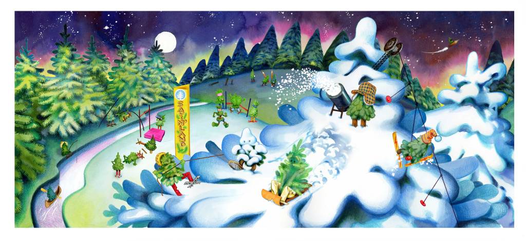 On a more seasonal note, two of his window panoramas drawn for the famous Galeries Lafayette in 2022: