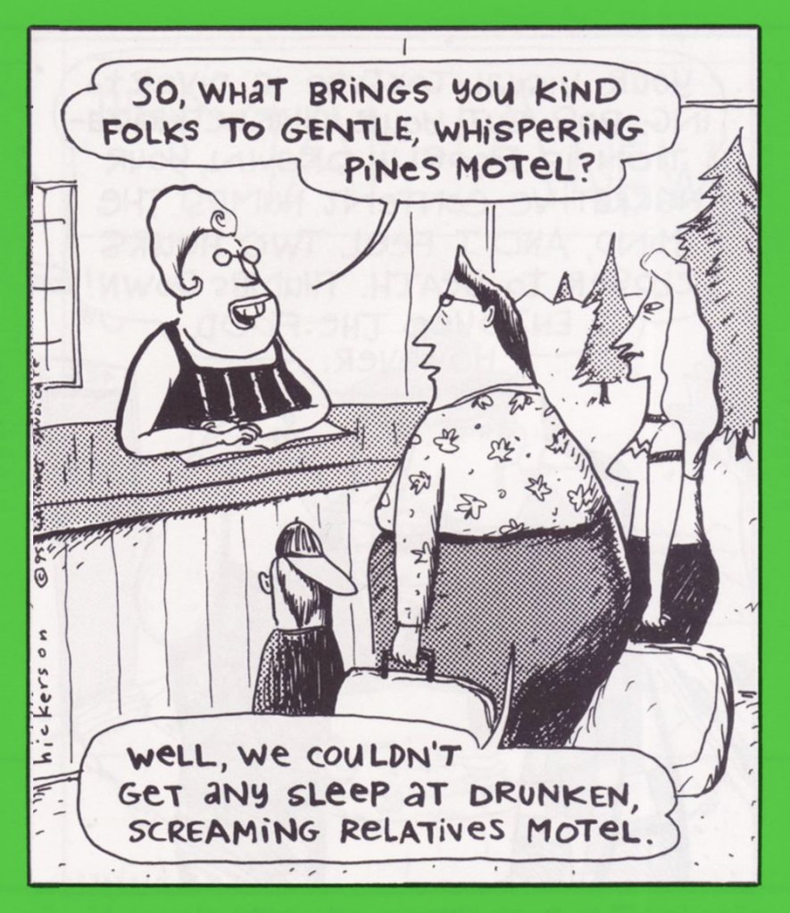 While the 1980s mega-popularity of Gary Larson’s The Far Side (1979-1995) led to a plague of mostly feeble imitations, it more significantly contributed to the acceptance of a greater range of humour (and drawing styles*) in a staid syndicated strip industry sorely in need of a vigorous shakeup. While Dan Piraro‘s Bizarro (1985–) is the clear winner among those that followed Larson’s path — no small thanks to an original vision and drawing chops to kill for — I’ve always had a soft spot for one of the also-rans, Buddy Hickerson’s The Quigmans.