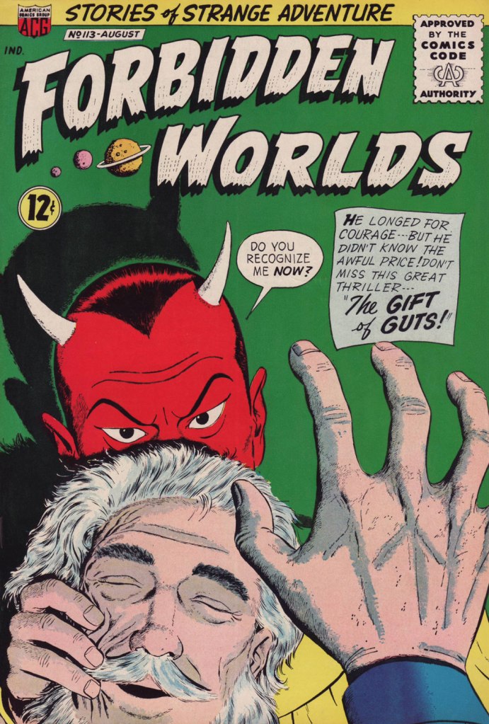« Squij! » is now one of my favourite sound effects.The Gift of Guts was cover-featured in Forbidden Worlds no. 113 (Aug. 1963, ACG). Pencils and inks by Ogden Whitney.