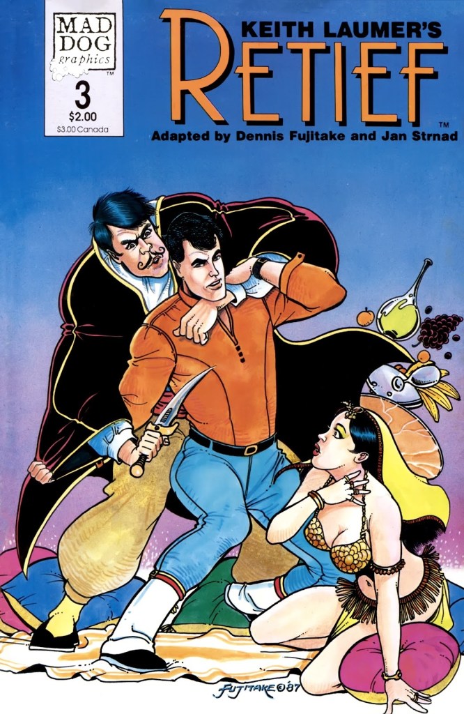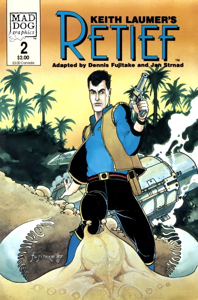 Writer Jan Strnad, who has a long list of credits under his belt, having worked for pretty much all major comic publishers as well as contributing articles to The Comics Journal and writing novels, and artist Denis Fujitake** adapted several Retief stories into comic book form in the late 80s. These were published by Mad Dog Graphics. This team did such a bang-up job that I by far prefer them to the Laumer material, and no small element of this adaptation’s success is the clean art by Fujitake that brings to vivid life these characters. There were 6 great issues overall (1987-1988), collected in 1990 into Retief!: The Graphic Album.