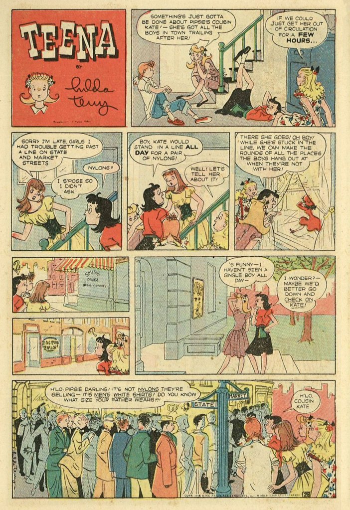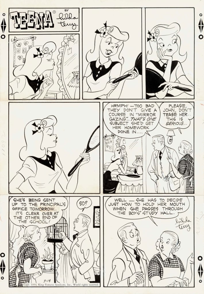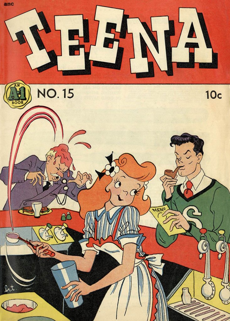 Teena evolved from a newspaper Sunday feature (It’s a Girl’s Life) that got renamed as one of its protagonists grew in popularity. It was distributed by King Features Syndicate, and ran from 1944 until 1964.