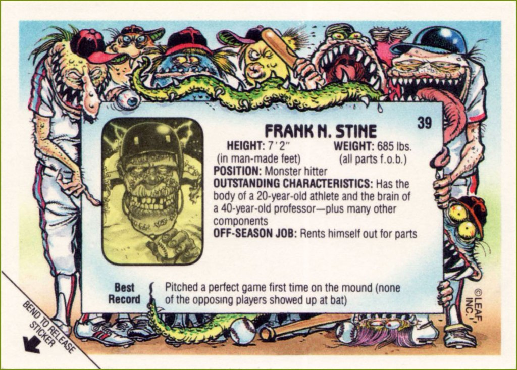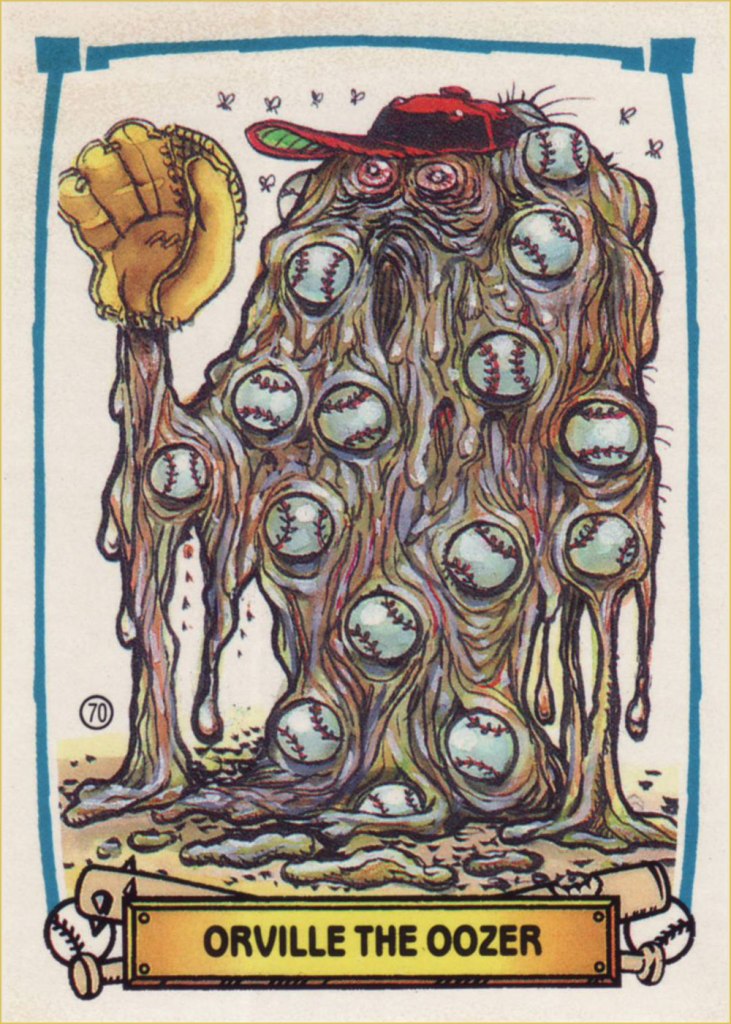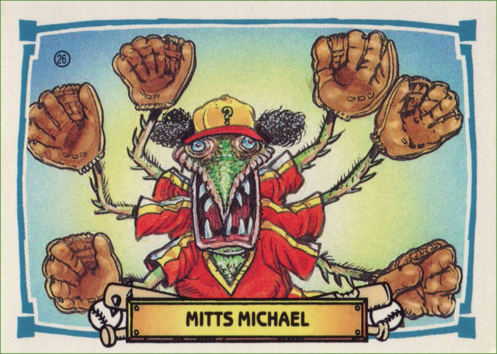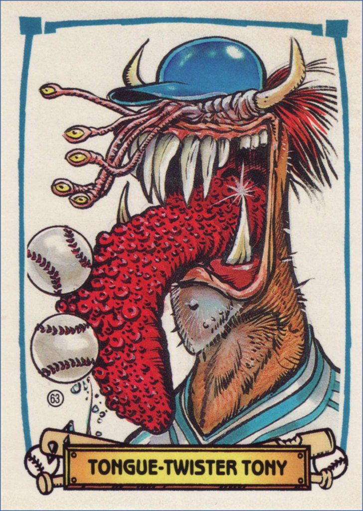 And while we’re on the subject, here are some highlights of Leaf/Donruss‘ 1988 card set Baseball’s Greatest Grossouts, illustrated by the busy yet ever-dazzling B. K. Taylor (Sick Magazine, The National Lampoon, The Muppet Show — he designed Dr. Teeth! — Sesame Street, Dynamite, Mulan…).