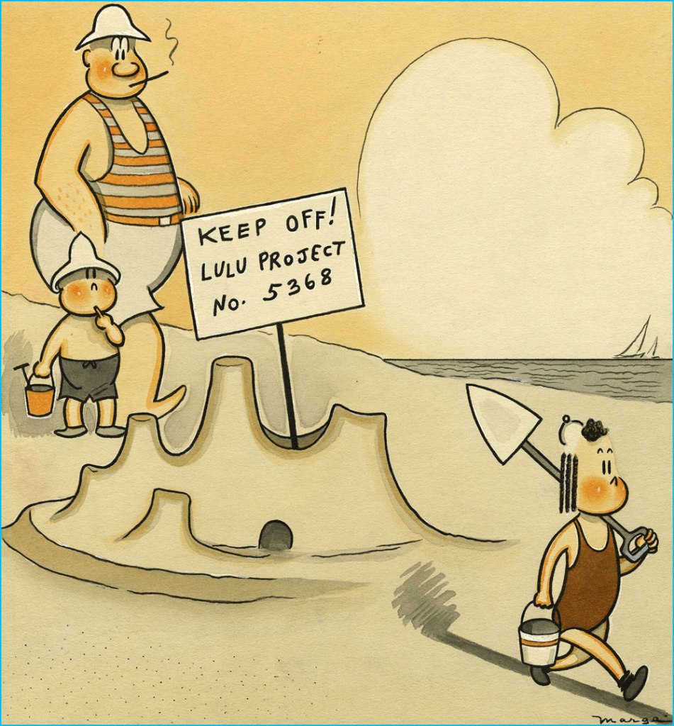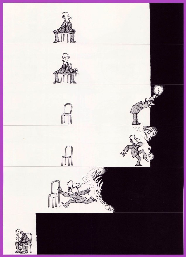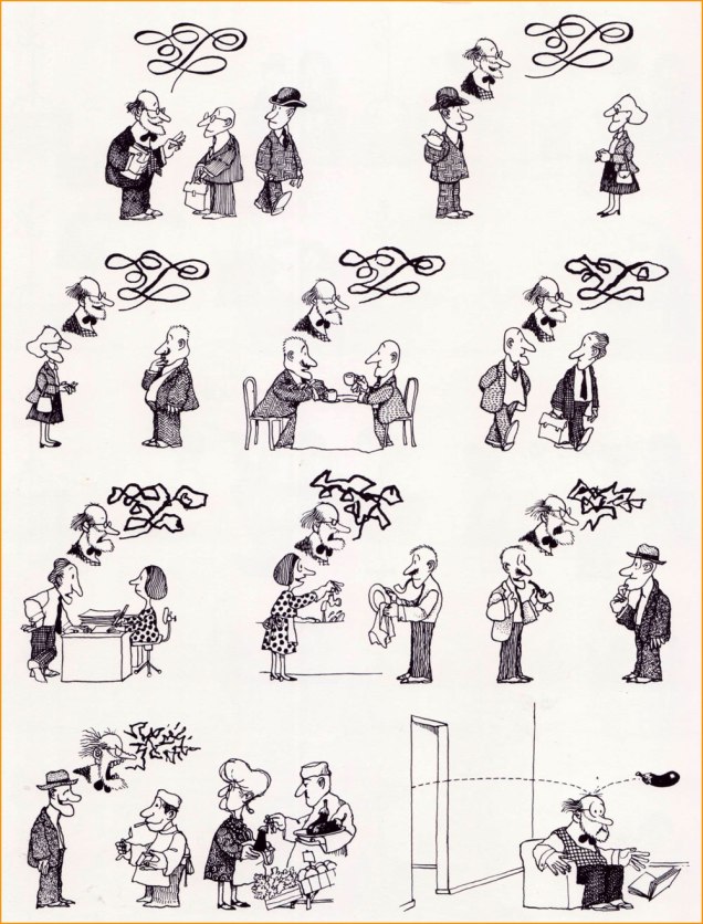 « When searching for a parallel in the pantheon of movie comedy or for a quick way to understand Quino’s work without Googling a single panel, you should think of him as a more disappointed Jacques Tati, the French director of Playtime and Mon Oncle, who was, like Quino, fascinated by architecture. »