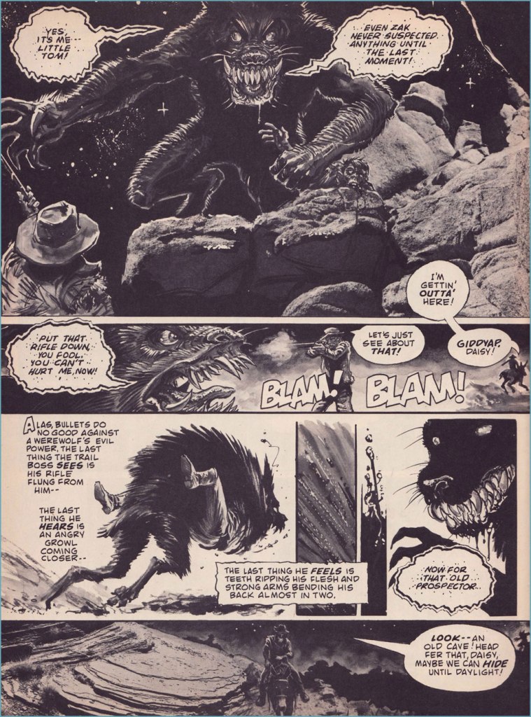 The following pages are taken from a French-reprint collection title Les nuits de l’épouvante, published by Dargaud in 1973 (I stumbled upon it years ago in a used bookshop, and instantly took to the art despite having no idea who Beá was). The dates I provide for their publication in English are from The New English Library’s Dracula, not the Spanish Drácula.