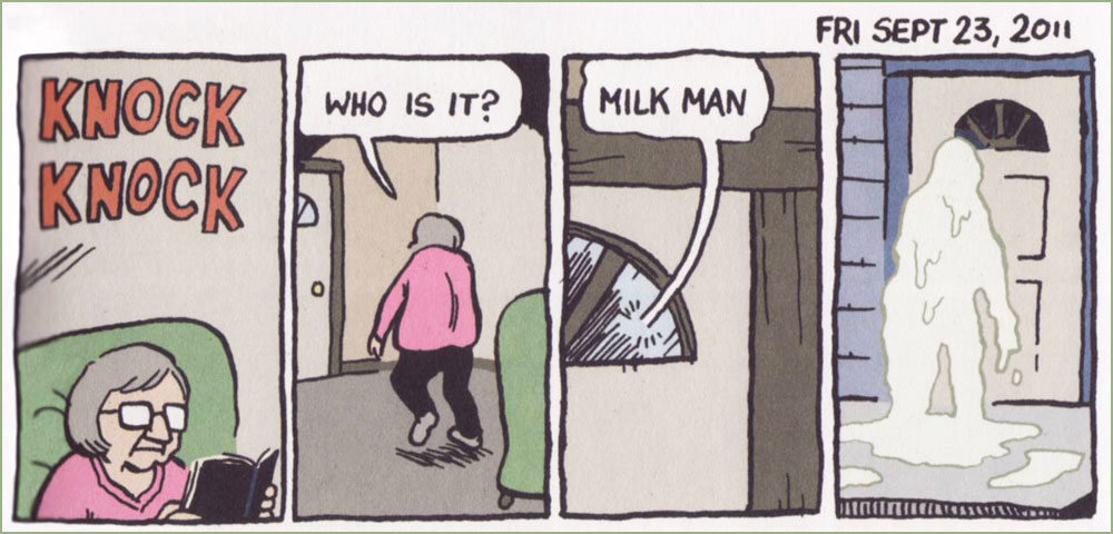 All strips excerpted from Don’t Get Eaten by Anything: a Collection of “The Dailies” 2011-2013 (Conundrum Press, 2015).