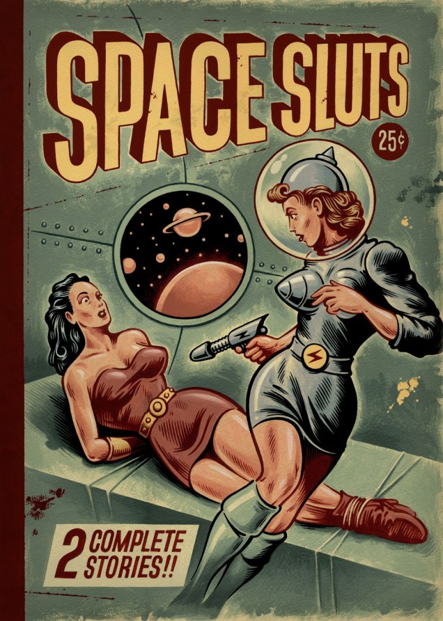 Then there’s the title. The art is insult enough, but was the shaming necessary? On Facebook, some mooncalf pointed out — incorrectly — that ‘slut’ didn’t have the meaning we’re familiar with until the 1960s. Nope (read on), but it likely wouldn’t have made it into print, and certainly not on the cover of a mainstream pulp magazine. I turn to a favourite reference work, Hugh Rawson‘s Wicked Words (1989, Crown) for the nitty-gritty: