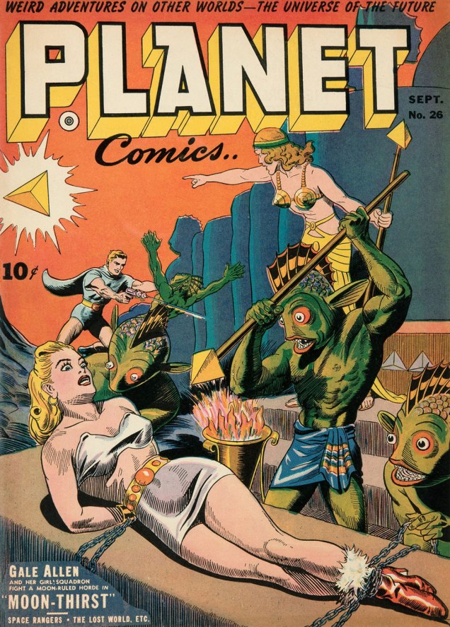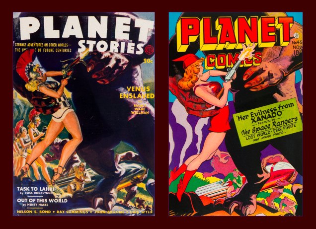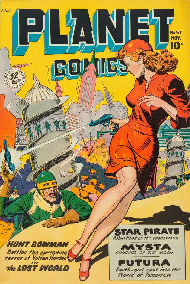 After a second pass… bingo: two issues of Planet Comics. At least the swiper was consistent: both covers were drawn by the same guy, Joe Doolin (1896-1967), a prolific pulp and comic book illustrator. Check out his interesting biography.