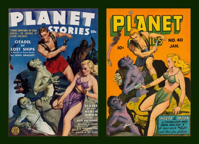 Typo: “This is Planet Comics no. 57 (Sept. 1943, Fiction House), cover by Doolin. Frankly, it’s easy to imagine this one recycled, with minor changes, as a Sheena-style jungle scene, another of the publisher’s specialties.”