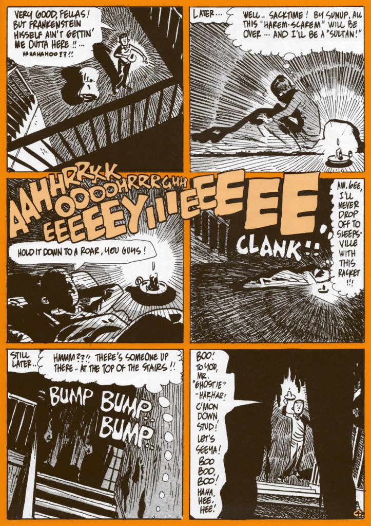 This is Spooky Haunted House no. 9 (Feb. 1974). Note that Spooky’s girlfriend’s actual name is ‘Pearl’… he just pronounces it ‘Poil’. Upon occasion, the ‘tuff little ghost’ essays the rôle of the spookee rather than his usual spooker (or is that “spookist”?)