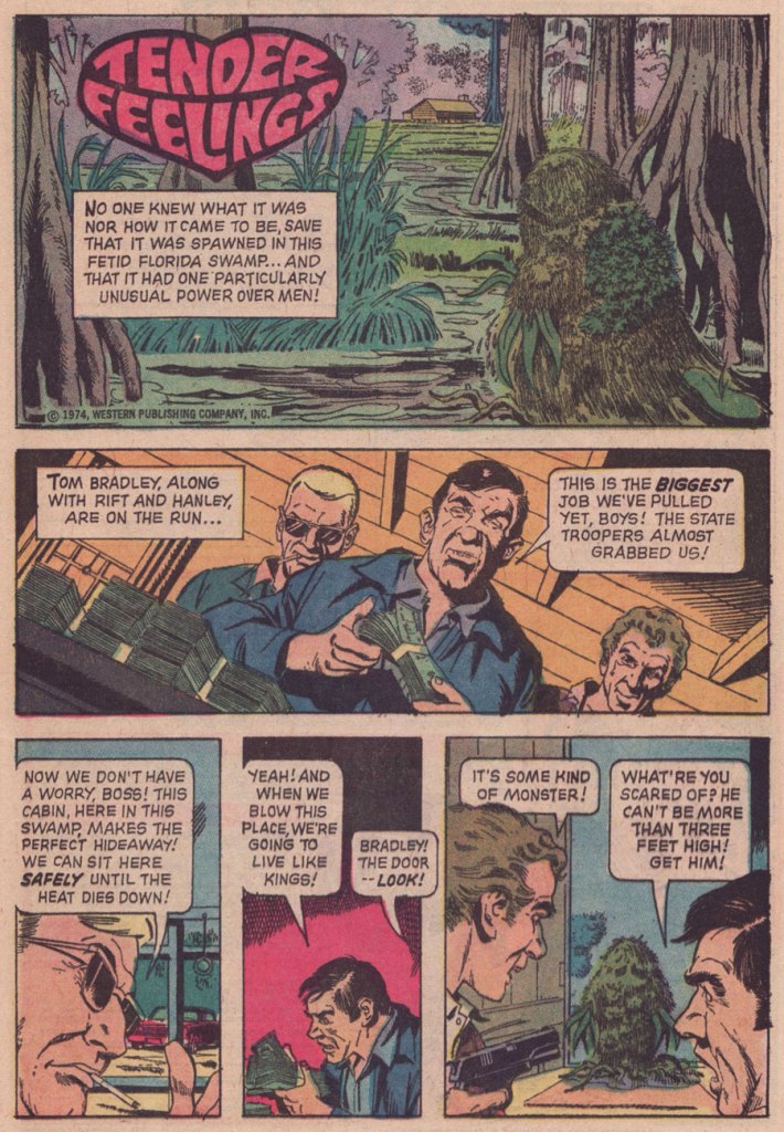 « I can’t take credit for “Tender Feelings.” I certainly wish I could, since it’s a delightful mashup/piss-take on DC’s Swamp Thing and Marvel’s Man-Thing. But nope — not me.