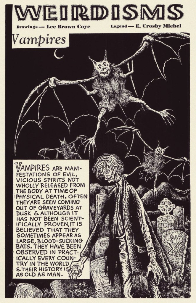Now, I could go on quite a bit about Mr. Coye, but as I always do in such cases, I’ll sharpen my focus. So focus I shall: on Weirdisms, a semi-regular feature LBC enjoyed in the pulpy pages of Weird Tales for a couple of years, circa the late 1940s — a precursor, if you will, to Warren’s Creepy’s Loathsome Lore a couple of decades later.