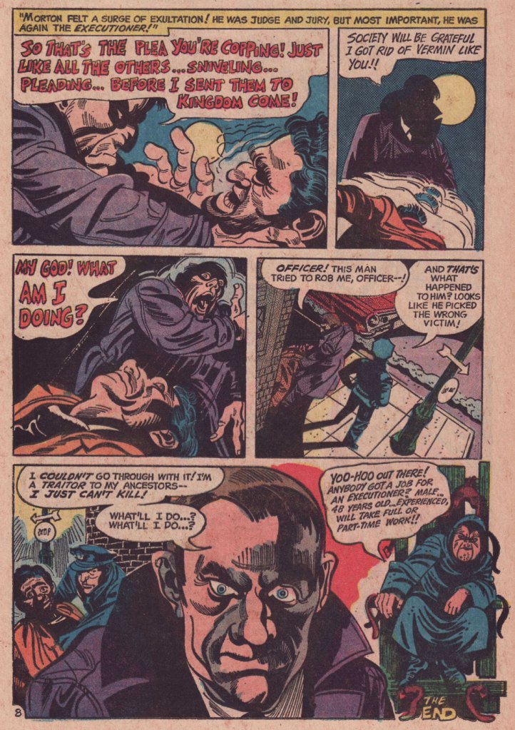 End of an Executioner was published in The Witching Hour no. 26 (Dec. 1972, DC), just after Brian Garfield’s Death Wish and well before Michael Winner’s film adaptation/distortion.