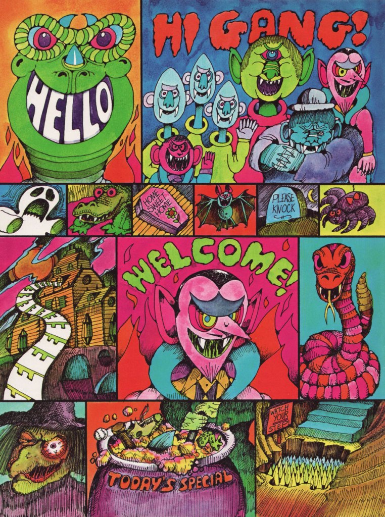 To be honest, while Loro’s artwork was often inspired, Déboires’ gags mostly fell flat; I presume that the creators had no idea how hoary these monster jokes had become, not having been exposed to the likes of Famous Monsters of Filmland, Topps’ ‘You’ll Die Laughing‘ card set, Mad, Cracked, Sick… and all the glut of parody mags. However, Loro was for a time — and right from the start — editor of the French edition of Warren’s Creepy, which was, imho, superior to the original thanks to better printing and, most significantly, its brand-new, first-rate documentary material created by Midi Minuit Fantastique alumni, replacing Warren’s cool, but repetitive in-house Captain Company adverts.