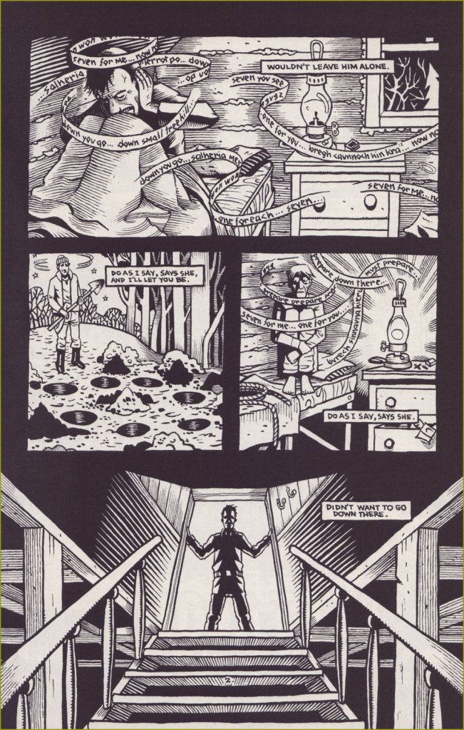This is a testament to the late Bernie Mireault’s compositional virtuosity and mastery of the syntax of comics… but it’s also evidence of how deeply he could look into the abyss.