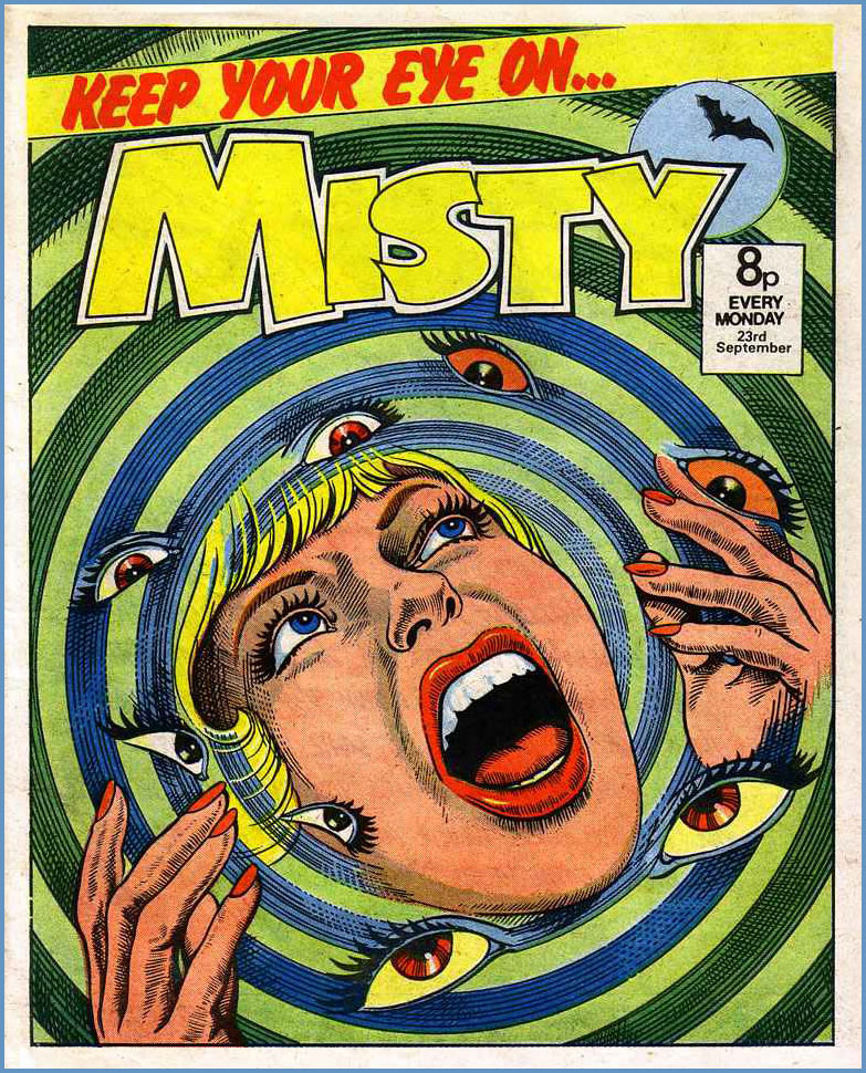 In 1977, « Freelance writer Pat Mills had an idea for a girls’ horror comic* that would use his 2000 AD approach — longer stories, bigger visuals, with adaptations of stories from big name writers… Misty was about to be born. »