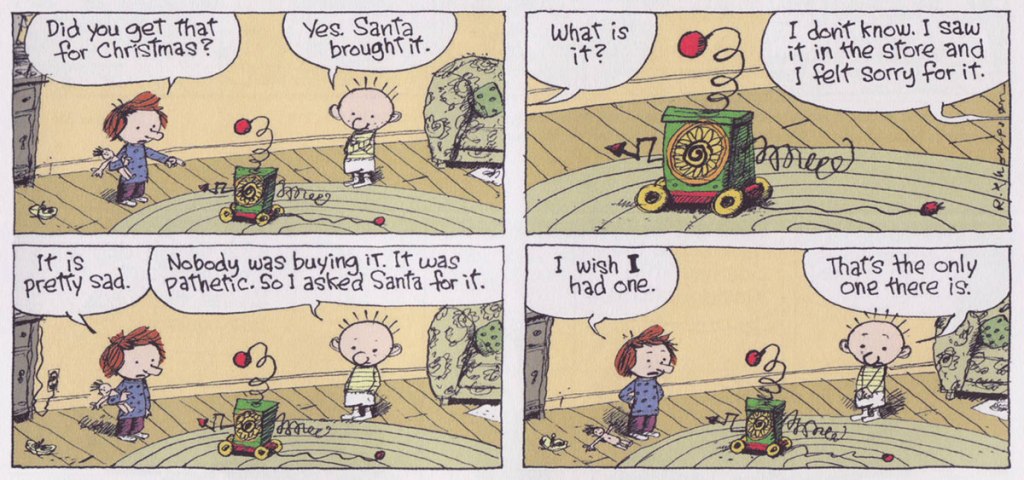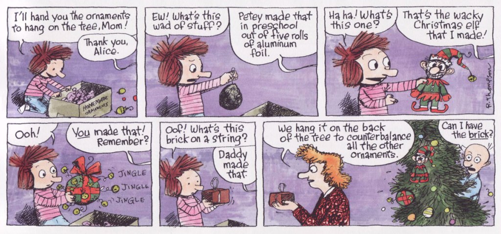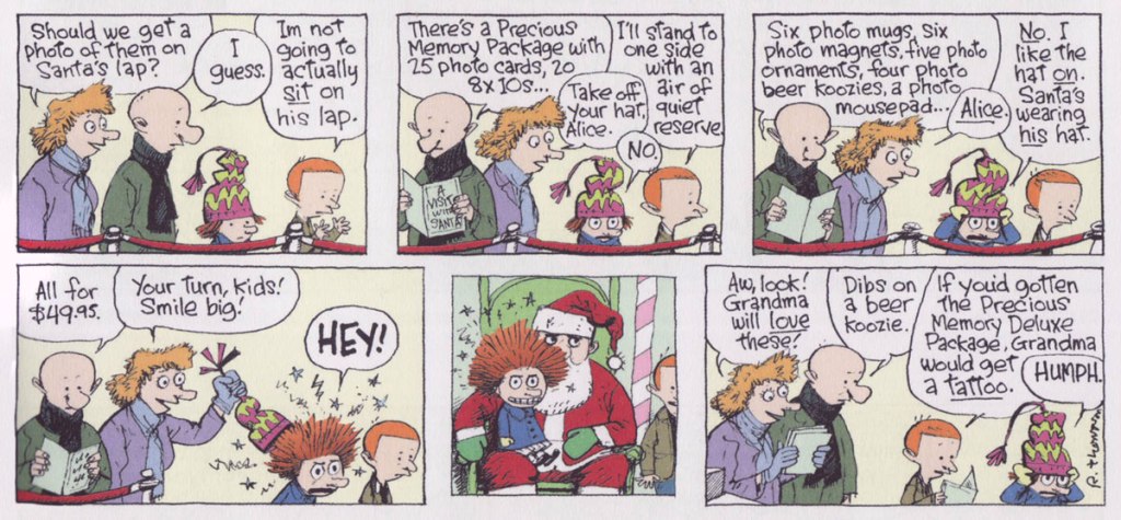 I’ve gathered most of the yule-themed Cul de Sac Sundays… one of these days, I might devote an entire post to Madeline Otterloop’s Christmas sweater dailies.