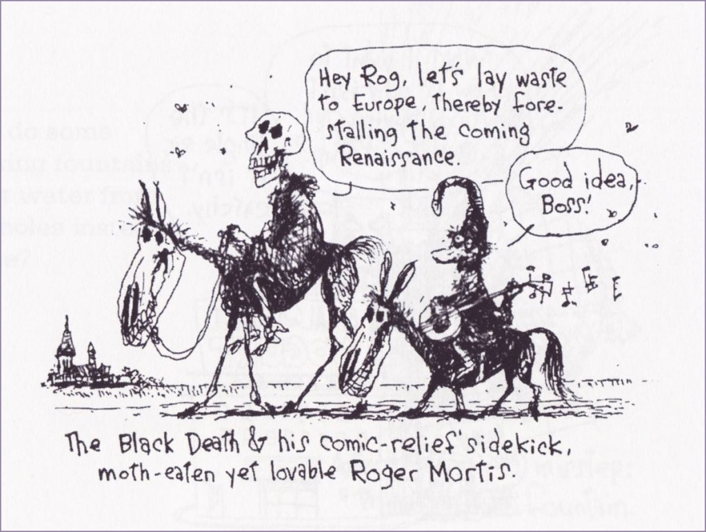 Why didn’t the Black Death kill everyone in Europe in the fourteenth century, rather than just a third of the population? Undated (circa 1990-1992). I couldn’t resist the adorable Roger Mortis.