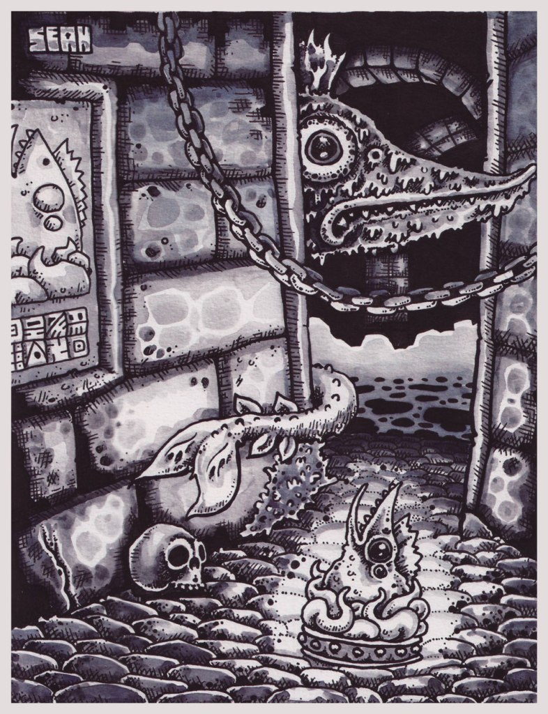 As I am one of those silly people who want to own stuff on paper, I looked for a book and found Acid Vomit! The Art of Sean Äaberg on Kickstarter. When I received this (glorious, by the way) compendium, something clicked into place and suddenly I realized that Sean Äaberg = Goblinko!! (Well, to be fair, Sean’s wife Katie is part of it, too.) Nothing like one of those ‘well, that should have been obvious a long time ago…’ realizations to put one into a philosophical mood.