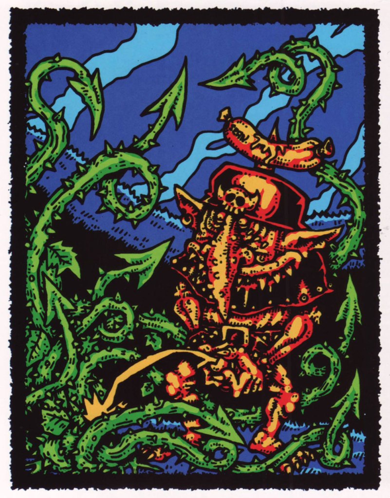 As for Äaberg art, it all began when I saw some very striking Tarot cards on some forum discussion – I have no interest in Tarot, but these were hitting all the right buttons, with their super bright green-magenta-yellow colour scheme and lush artwork. I looked up the artist, and landed on his Dungeon Degenerates on the wonderful Monster Brains blog.