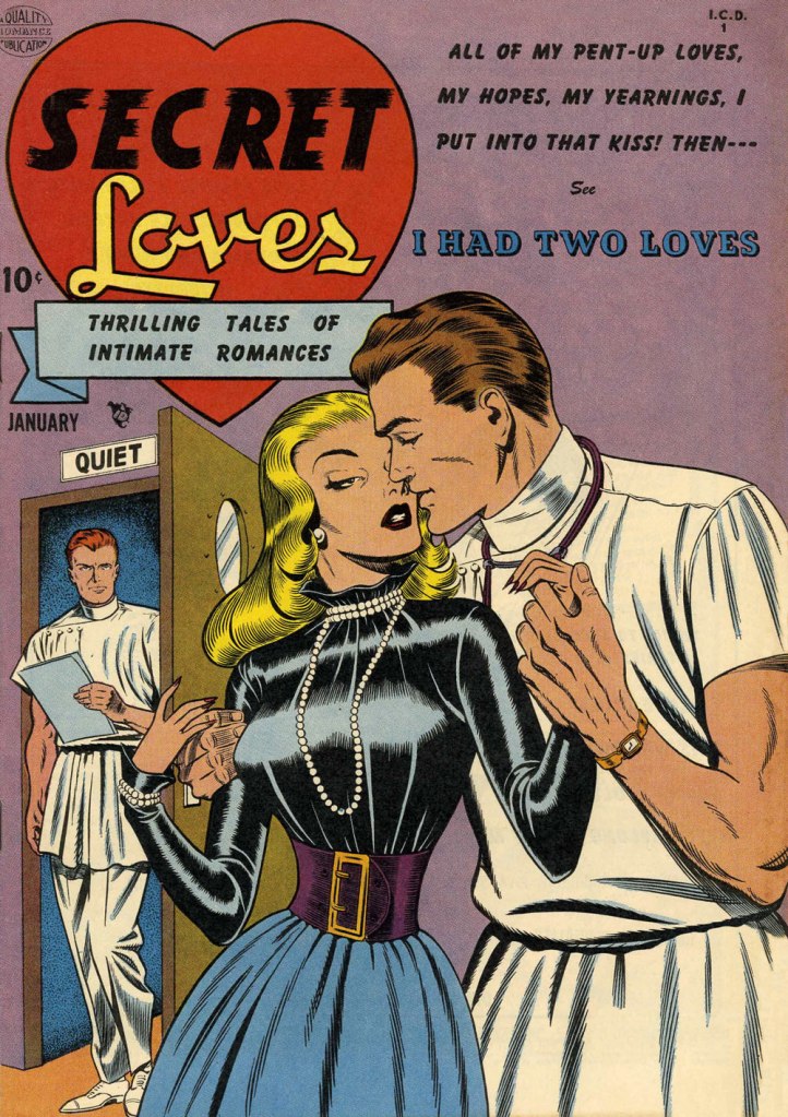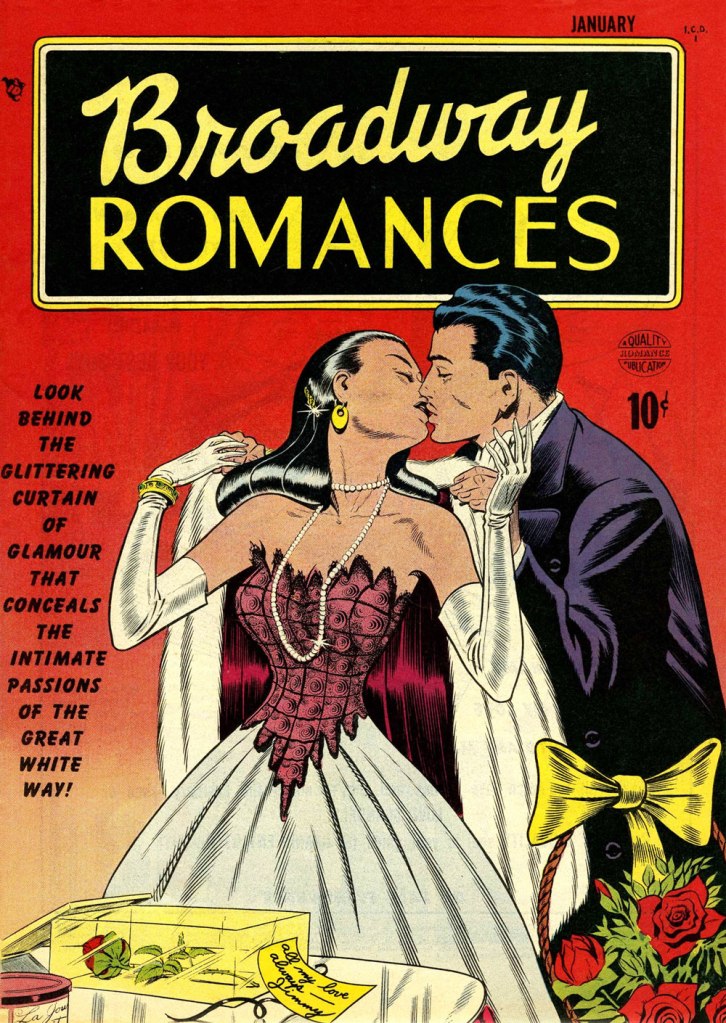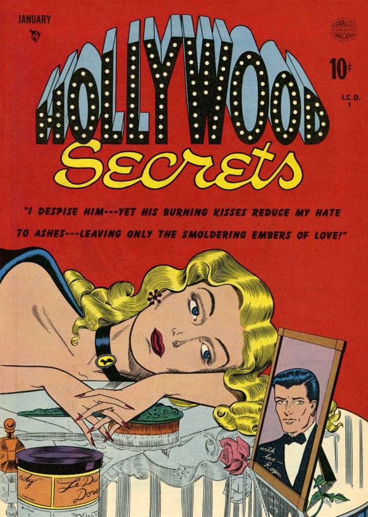This is Heart Throbs no. 1 (Aug. 1949, Quality). Ever the fetishist, Bill never could resist a well-fitted pair of opera gloves.This is Heart Throbs no. 2 (Oct. 1949, Quality). Quality’s flagship romance title, Heart Throbs lasted one hundred issues, 46 published by Quality, and an even hundred by DC (1956 to 1972) after they picked up what remained of the publisher’s assets, among them Blackhawk, Plastic Man, Doll Man, Uncle Sam, Phantom Lady, and some war (G.I. Combat) and romance titles.This is Hollywood Secrets no. 1 (Nov. 1949, Quality). An unusual colour scheme!This is Campus Loves no. 1 (Dec. 1949, Quality).This is Flaming Love no. 1 (Dec. 1949, Quality). The gloating guy is the prototypical Ward creep.This is Broadway Romances no. 1 (Jan. 1950, Quality). It’s so refreshing to see Ward devote the same level of attention to detail to background items as to the female figure and her accoutrements.This is Hollywood Secrets no. 2 (Jan. 1950, Quality).This is Love Letters no. 2 (Jan. 1950, Quality). Interesting how all these romance covers — the majority of Ward’s production in that genre — all came out within the span of a year or so.This is Secret Loves no. 2 (Jan. 1950, Quality). Ward liked his women to have tiny, needle-like digits — I mean, just compare the lovers’ respective paws!This is Torchy no. 5 (July 1950, Quality), Ward’s signature creature. With the years, as his women grew ever more buxom, his men became ever more grotesque — these are some of the archetypes, but noses got longer, legs got skinnier and shorter, bellies more bulging — until men and women in no way seemed to belong to the same species. While that device of exaggeration was a mainstay of « girlie » art, Ward took it further than just about anyone.