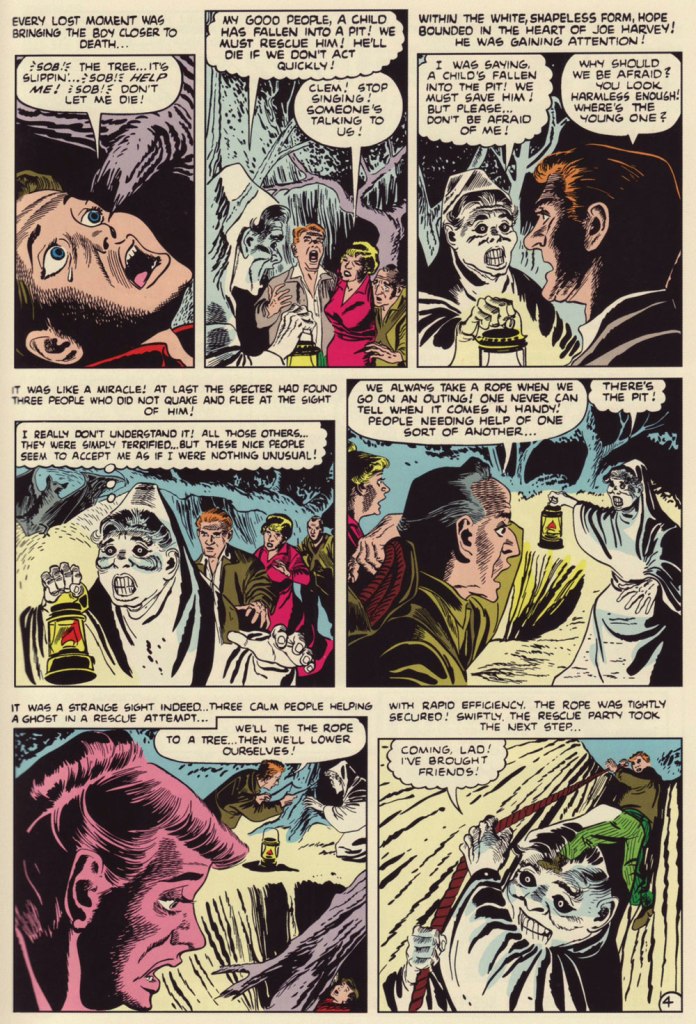 *By « distinguished peers », I mean the likes of Alex Toth, Al Williamson and Stephen Bissette. The latter wrote, in his introduction (essential reading alert!) to PS Artbooks’ Adventures Into the Unknown Volume 4 (March 2013, PS Artbooks): « Like almost all of the ACG horror comics, Gershwin’s work was the antithesis of the festering, tactile rot that made celebrated Pre-Code genre artists like Graham Ingels, Jack Davis, and Basil Wolverton so indelibly iconic: horror comics you could almost smell. Gershwin’s imagery is comparably sterile, even antiseptic, but his storytelling is as direct and no-nonsense noir as the best of Johnny Craig, his energetic pen-and-brush work as crisp and razor-sharp as Jack Davis‘ (sans the grit and grue and bits of meat and dirt spattering every motion), his staging as audacious as that of any cartoonist of his day. »