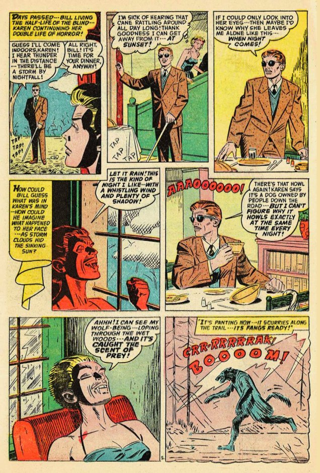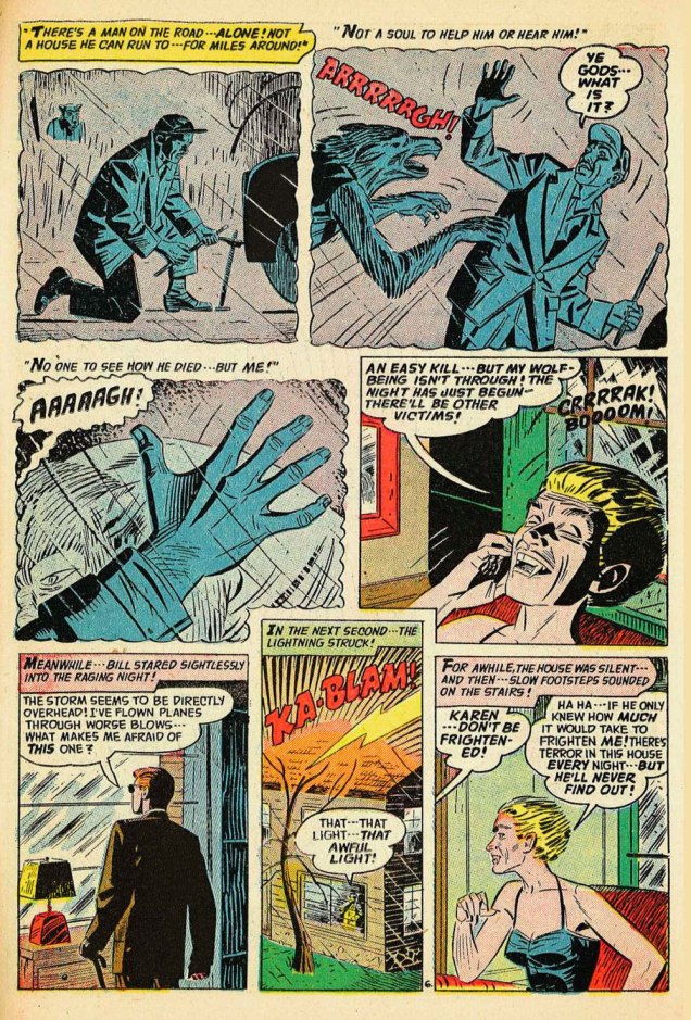 First of all, Happy Hallowe’en! On this finest of occasions, I bring you a wonderfully novel take on the hoary theme of the werewolf, handled by one of the truly unsung — save, it would seem, but some of his most distinguished peers* — draughtsmen of the Golden Age, namely Emil Gerswhin (1922-1999).