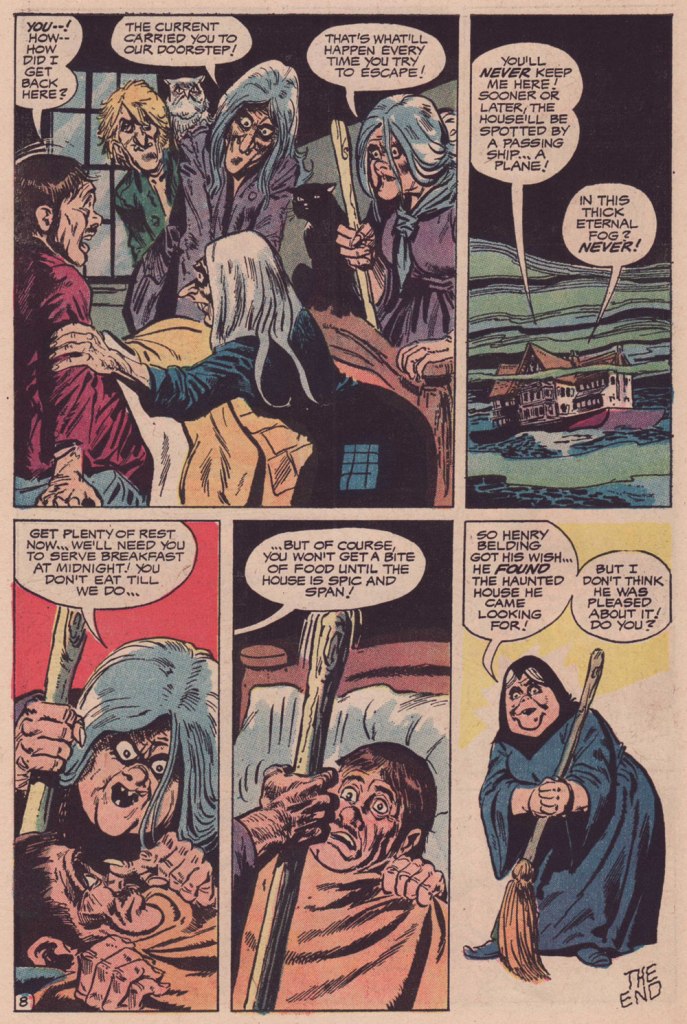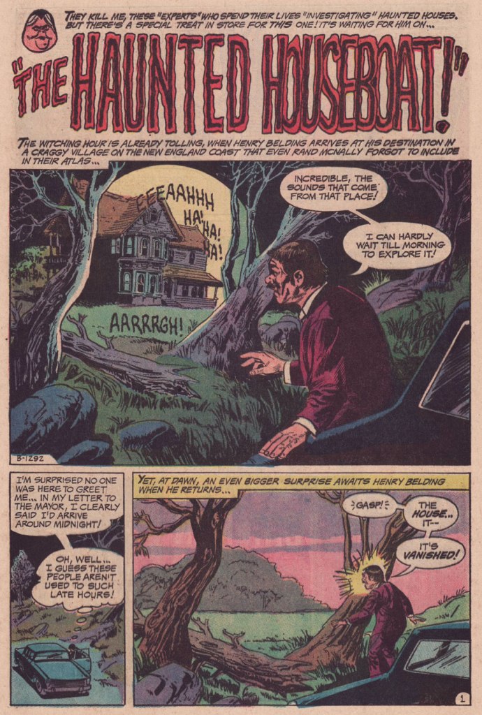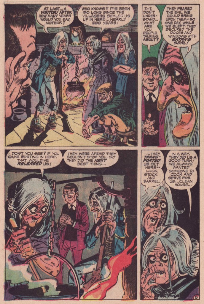 The writer’s uncredited, and that’s a shame, because this is anything but formulaic — and DC’s mystery books were formulaic to a fault, especially under Joe Orlando‘s guidance. I suspect the author to be editor Murray Boltinoff — he often pitched in, under sundry bynames.This is It’s Midnight… The Witching Hour!no. 21 (June-July 1972, DC), edited by Murray Boltinoff and with cover art by Nick Cardy.