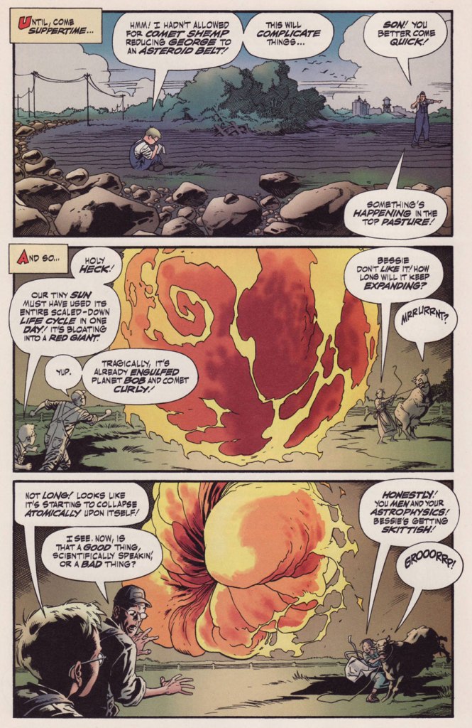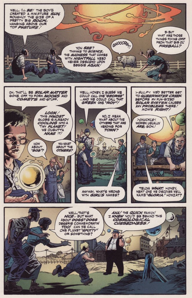 But let’s commence from the top, with the dizzying tale of Smalltown Stardom (Tomorrow Stories no. 1, Oct. 1999, America’s Best Comics). No need to shove, there’s plenty of room at the trough!