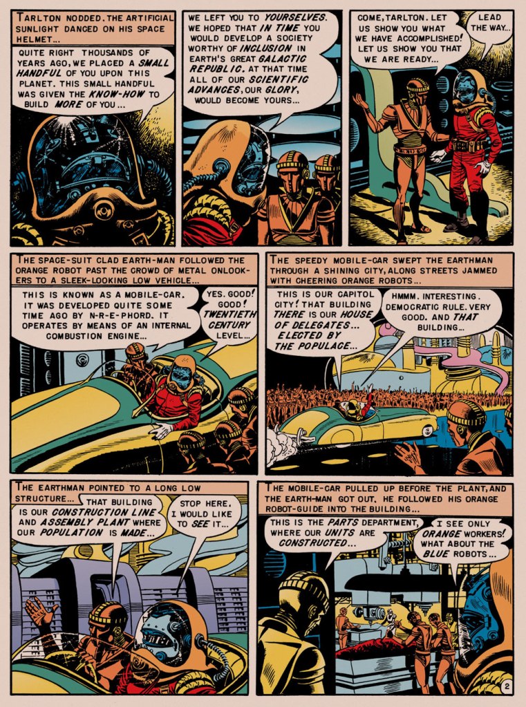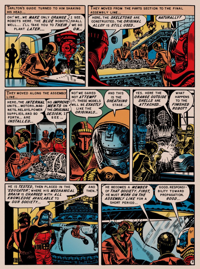 Initially, I thought posting such an already eminent story as ‘Judgment Day’ was a trifle too obvious. But then again, how famous can a standalone comic book story published seventy years ago be, in the true scale of things? Really, it can never be famous enough.