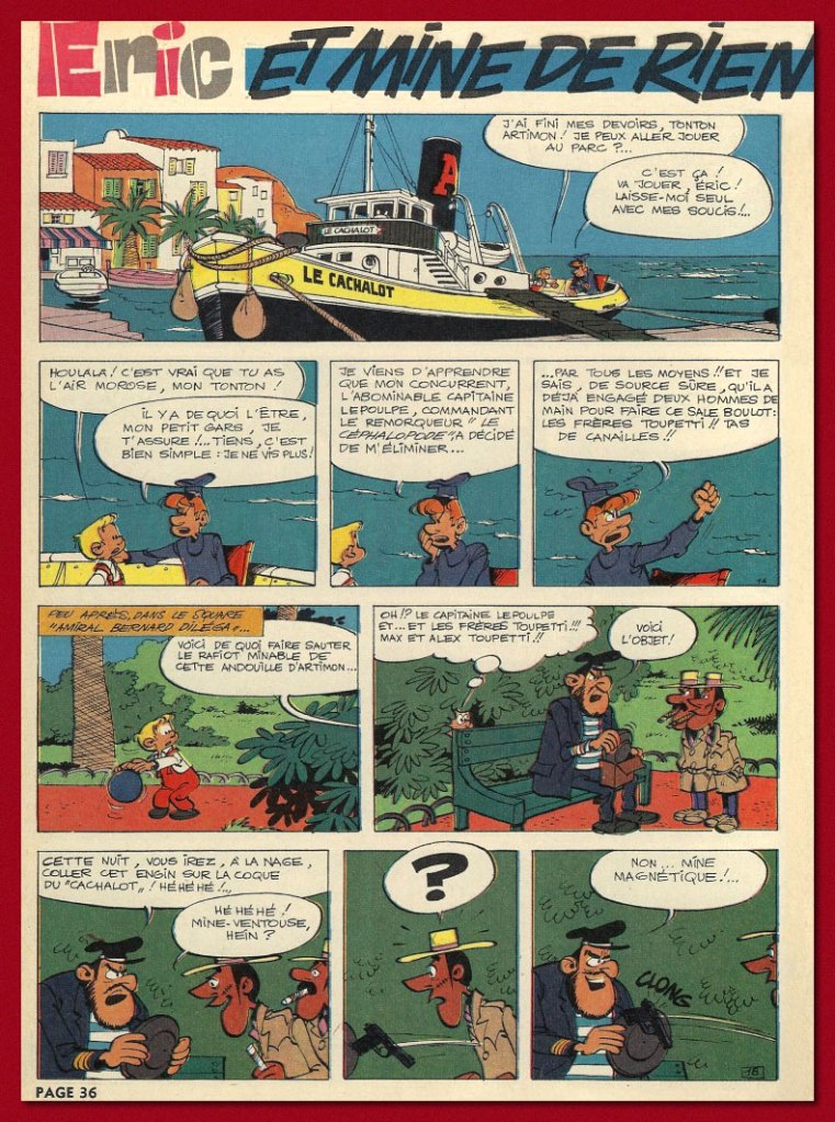 The opening page to the short concluding episode of the boy and the captain’s adventures, Et mine de rien (Spirou n° 1506, 1967).