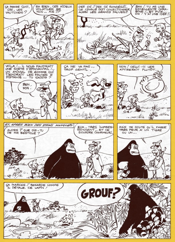 *These days, thinking about Gaston Lagaffe puts me in an ugly mood, I’m afraid. Franquin had expressly, and all along, requested that his creation be put to rest with him. But did his publisher – having built an empire upon Franquin’s creations — honour his wishes? No more than usual. Another arrogant slap — post-mortem this time — in the face of a genius exploited and mistreated his entire adult life. In this world, the interest of the characters… oops, pardon my French, ‘properties’ obviously trumps that of the flesh-and-blood creators. Every time. For there’s always some scab hack or other backstabber (and they *always* claim to be huuuge fans, as Miller said to Eisner, betraying him with a kiss) to aid and abet venal publishers. That’s how we got a pointless Sugar and Spike revival and all those Watchmen prequels. Hopefully, Monsieur Franquin’s daughter will prevail in her lawsuit against Dupuis to settle the matter in a just and fitting manner. [ Update: it didn’t end well. The suits won. ]